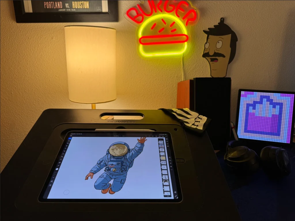 Here’s a look at my digital art process. I start each piece in Adobe Fresco on the iPad, using pixel layers for the rough work and switching to vector layers as the design comes together. When the illustration is ready, I bring it into Affinity Designer to finalize the details and prepare it for print. Both programs are industry-standard and have free versions, making this workflow powerful and accessible.